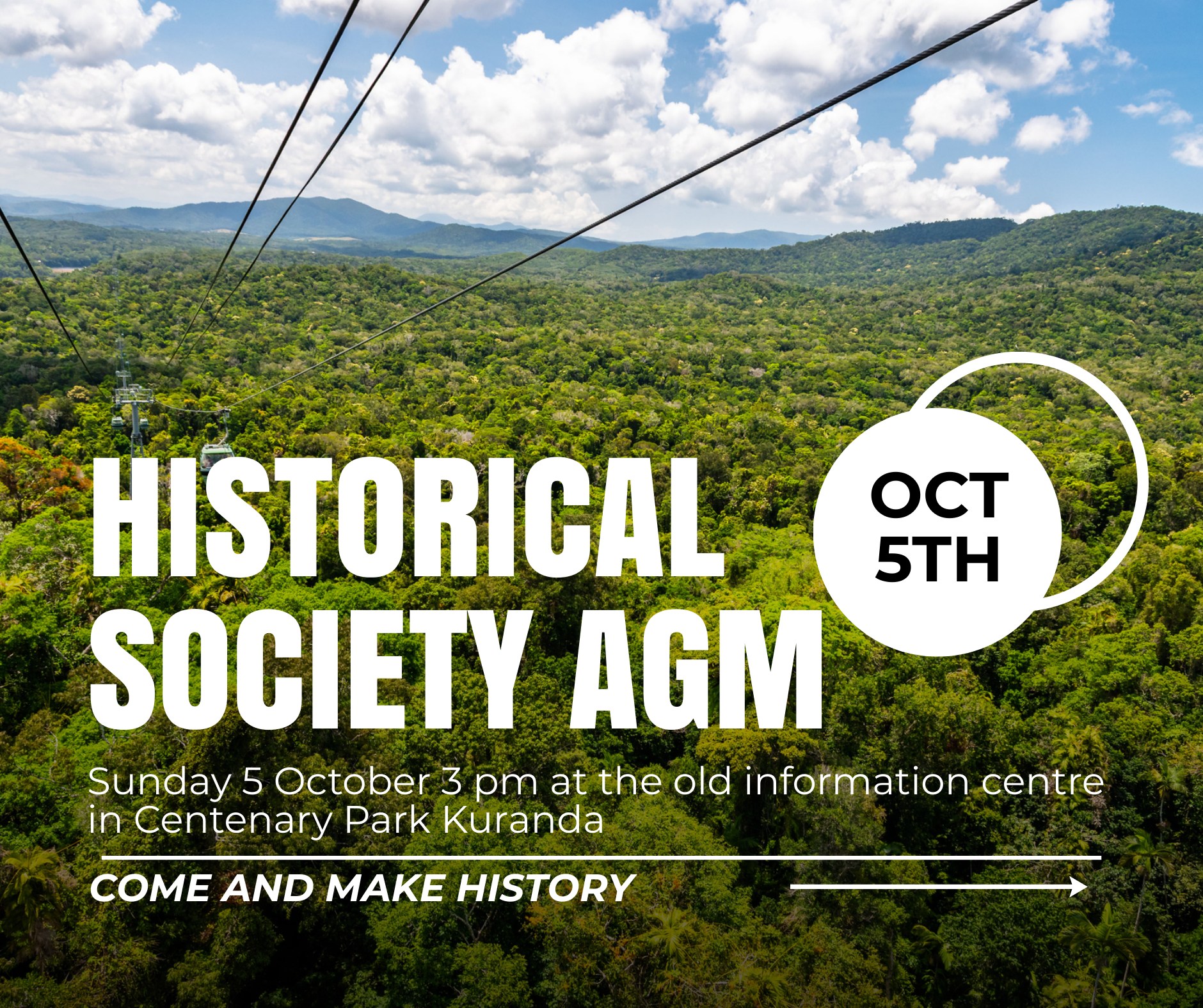 The Kuranda Historical Society is based in Kuranda, Queensland (PO Box 66, Kuranda QLD 4881) and serves the broader Kuranda district within Mareeba Shire and Far North Queensland. Whether you live locally or have family roots in the region, we welcome your interest and involvement.